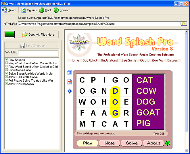 puzzles. All the flexibility within the Word Splash Pro Java Applet can more