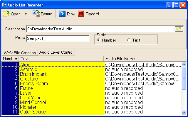 in your Word Splash Pro puzzles. Audio List Recorder The audio list recorder allows easily recording your own sounds using the