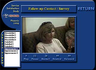 If the features listed here fit your needs just specify you are interested in using the Standard Video Clip CD-ROM Framework when you contact us about your project. If you want more functionality than provided in the standard framework then we can discuss your project to see if the functionality can be added to our framework, or if we will need to create a totally new project framework to meet your specifications. You can also review the Standard Indexed Video CD-ROM Framework.